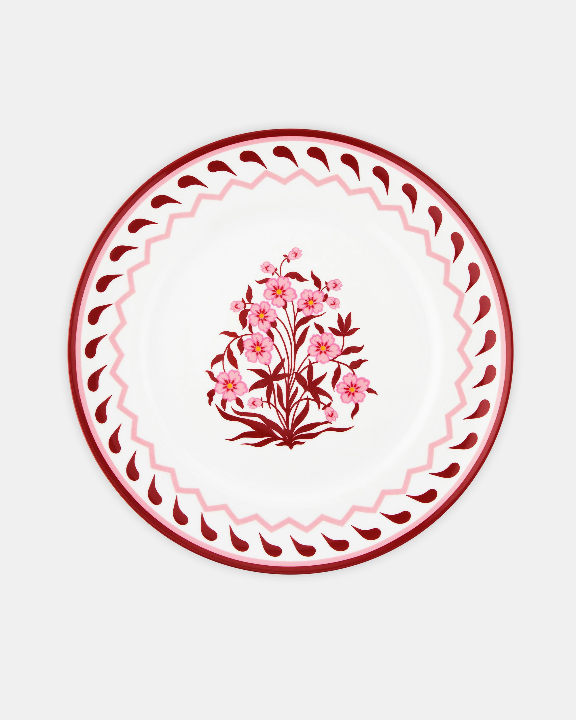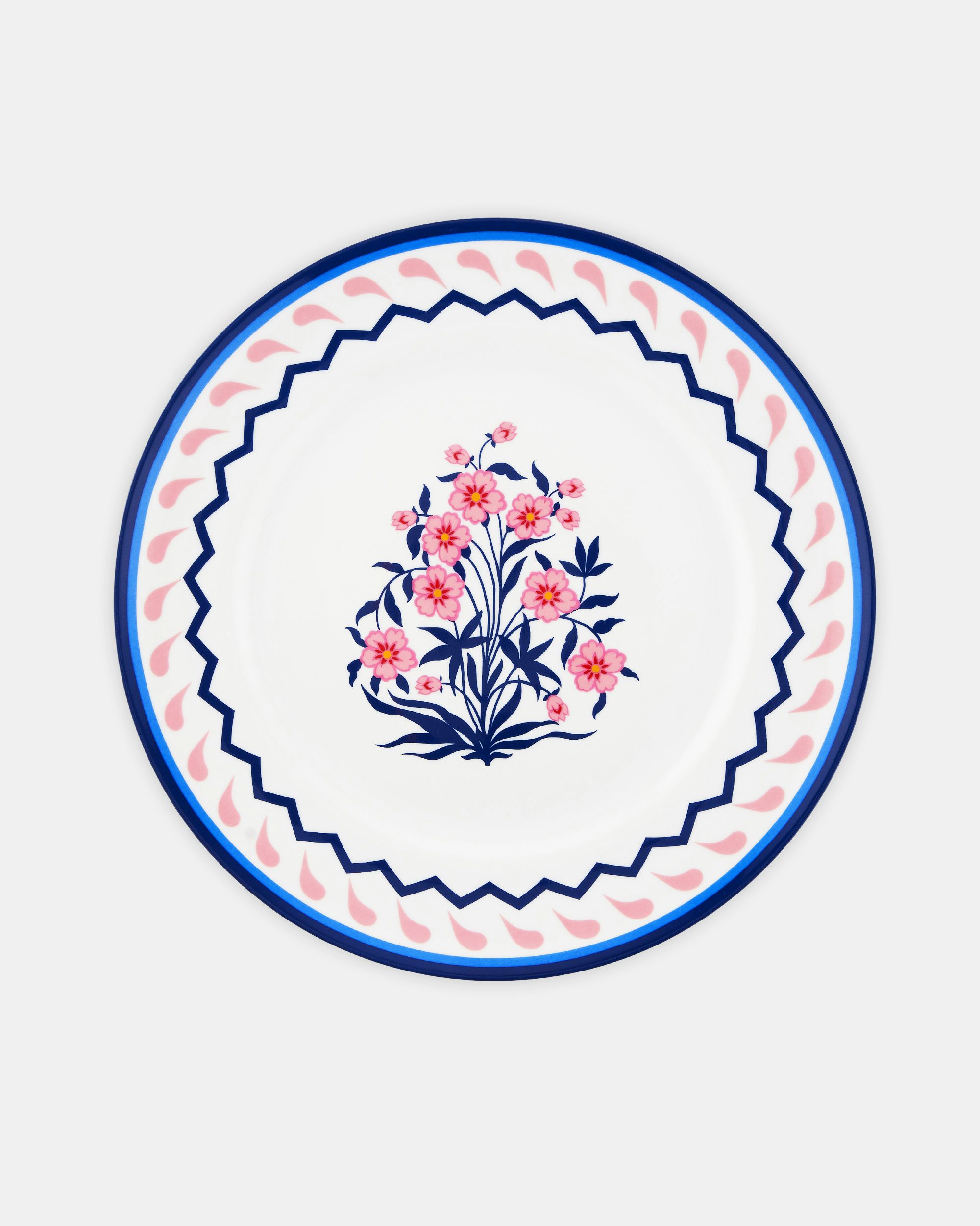 Unser Flacher Teller Jaipur wird Ihre nächste Tischgesellschaft mit einem Hauch von Zauber erfüllen. Sorgfältig aus Porzellan hergestellt und mit einem rosafarbenen und blauen Muster geschmückt. Das Design erinnert an die Düfte und Atmosphären einer Reise nach Indien, einem der beliebtesten Reiseziele von Edgardo Osorio. Heben Sie es mit anderen traumhaften Teilen aus unserer Kollektion hervor.