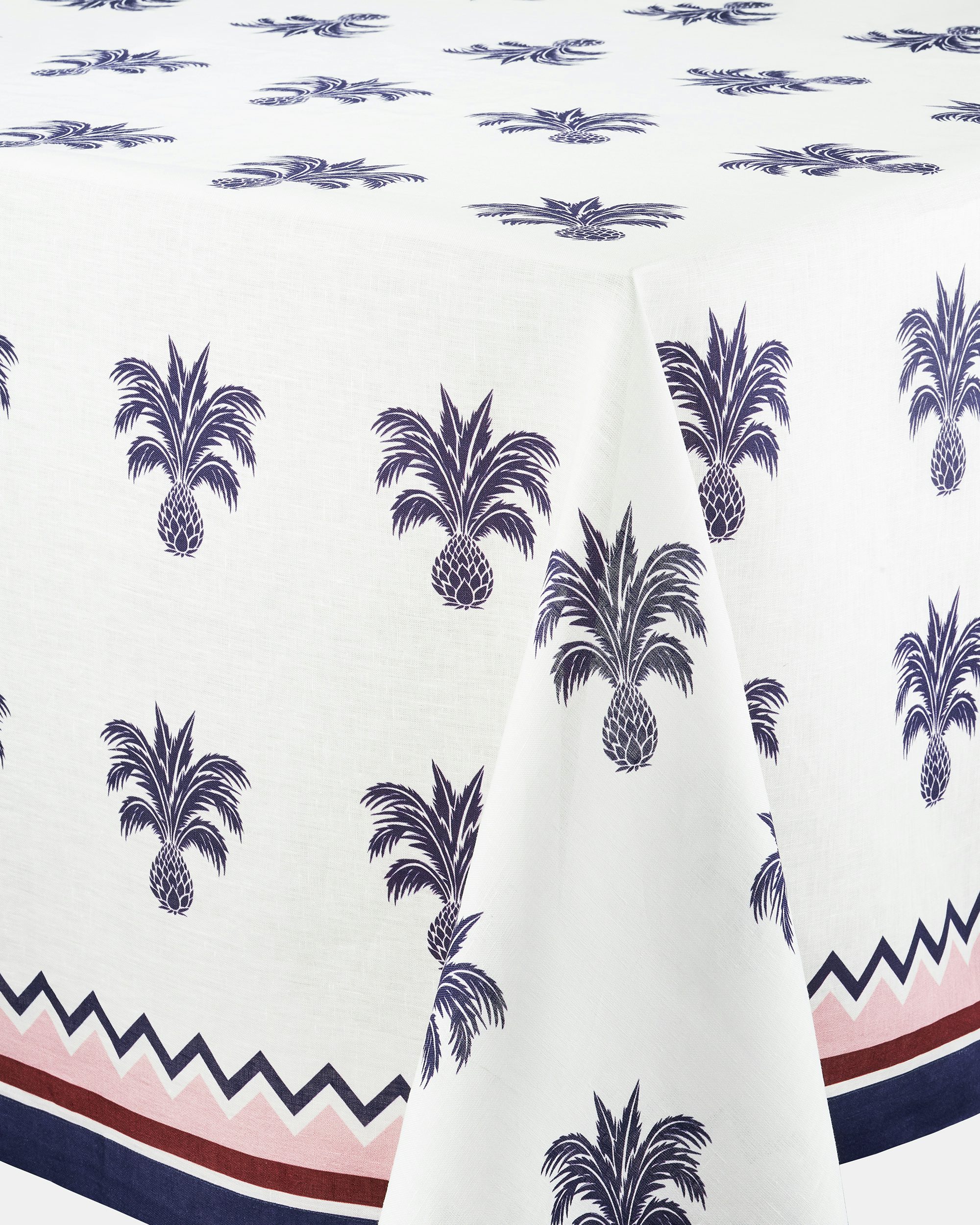 Dress up any dining experience with our Ananas Tablecloth. Woven from 100% luxurious linen in shades of bordeaux and pink, the decorative style is adorned with rows of pineapples, our signature motif. The print will perfectly showcase your cherished collection of luxury tablewares.